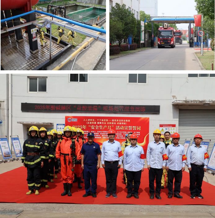 最后,公司精心组织了一场酸碱罐区“盐酸泄漏”现场处置应急演练活动。在这场演练中,化水当班人员、应急队员、检修人员以及消防中队紧密配合,实现了高效的有机联动。通过此次演练,不仅提升了员工在面对突发事件时的应急反应和处置水平,检验了公司应急体系的协同作战能力,还更好地诠释了“正道筑基,凝聚共治,创新驱动,卓越领航”,筑牢了公司安全运营防线。